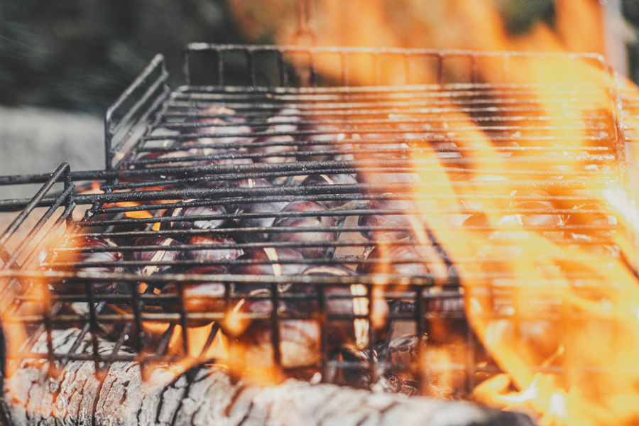 Le feu crépite doucement, installé dans le brasero sur la terrasse. Les châtaignes sont incisées, on veut éviter les explosions ! Une fois le feu bien parti et les châtaignes prêtes, elles sont déposées sur la grille, au-dessus des flammes. Un parfum boisé nous pique les narines, les coques noircissent, se fendent, et le fruit doré se révèle. On attend, on retourne, on écoute, on sent. Puis vient le moment de les déguster, encore tièdes, sans se brûler le bout des doigts ou le palais. Une saveur d’automne.